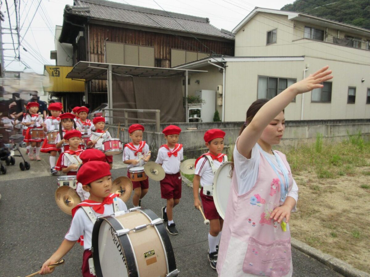 広場に到着後はひまわり組はダンス「ぼくたちぶどう」ばら組はCD鼓隊「愛は勝つ」を演奏しました!